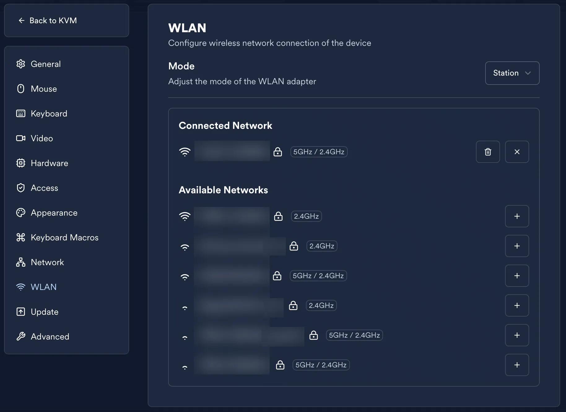 LeafKVM functions as a client (station) and connects to an existing Wi-Fi network.
