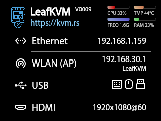- Enter this IP address in any web browser to access the LeafKVM interface. Detailed info.